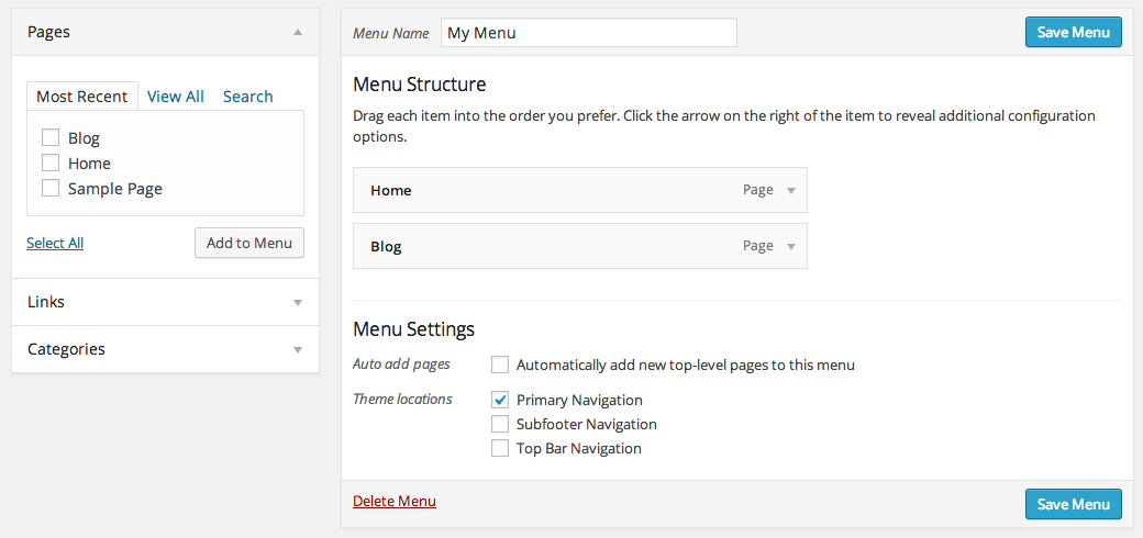After you are done, just add some pages to your brand new menu and hit Save Menu button. Voila!